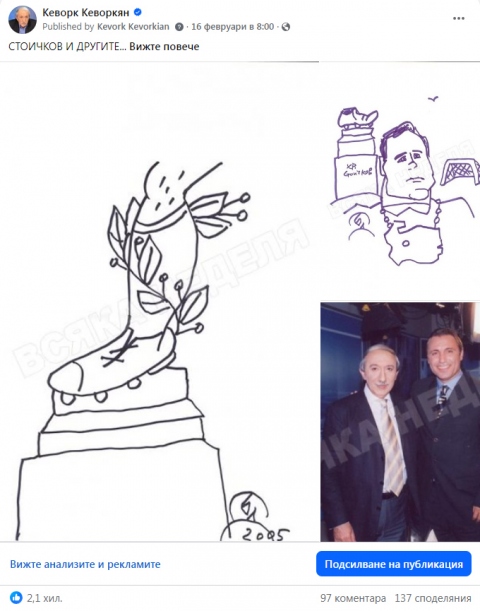 В архива на „Всяка неделя" има две наистина гениални рисунки на Борис Димовски. Не се подвеждайте - Борето е обкичил с лавров венец левия крак на Стоичков, но той го ценеше много и като човек.