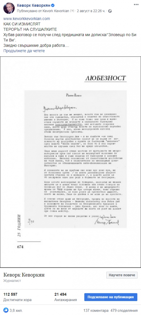 Хубав разговор се получи след предишната ми дописка/“Зловещо по Би Ти Ви“.